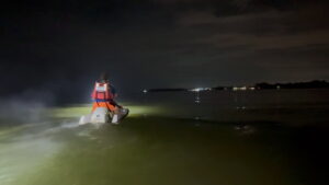 မဲကလောင်မြစ်အတွင်း ၄ နာရီကြာမျှ မျောပါခဲ့ပြီး ရေထဲပြုတ်ကျသည့် နေရာမှ ၃ ကီလိုမီတာ (၂ မိုင်နီးပါး) အထိမျောပါသွားခဲ့ကြောင်း ၊ ငါးဖမ်းလှေများက ဖြတ်သန်းသွားသော်လည်း မမြင်ခဲ့ကြကြောင်း၊ သူမသည် ပက်လက်လှန်လျက် မျောပါရင်း အကူအညီရရန်ဆုတောင်းခဲ့သည်ဟု ဆိုသည်။ မကြာမီတွင် လှေငယ် တစ်စင်းရှိ အလုပ်သမားက သူမကို ရှာတွေ့ခဲ့ပြီးအံ့ဩဖွယ်ရာတိုက်ဆိုင်မှုတစ်ခုဖြစ်ကြောင်း သူမက ပြောကြားသည်။
