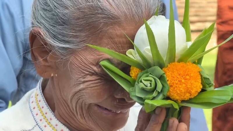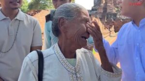 အဘွား ဒေါ်တင်ထွေးက အလွန်စိတ်လှုပ်ရှားပြီး ပျော်ရွှင်နေပါတယ်။ သူမ မှတ်မိနိုင်တဲ့ ထိုင်းစကားလုံး အနည်းငယ်ကို ပြောကြားခဲ့ပါတယ်။