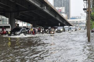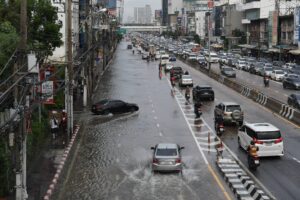 ဘန်ကောက်ဒေသတစ်ဝှမ်း မိုးသည်းထန်စွာ ဆက်တိုက်ရွာသွန်းပြီးနောက် တူးမြောင်းများရှိ ရေများ မြင့်တက်နေကြောင်း ယနေ့ နံနက် ၅ နာရီတွင် ဘန်ကောက်မြို့တော် စီမံအုပ်ချုပ်ရေးအဖွဲ့ (BMA)ကသတိပေးသည်။