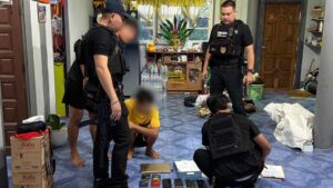 ထိုင်းနိုင်ငံ ၊နခွန်ပထုန်ခရိုင်၊ ဘန်လမ်မြို့နယ်ခွဲ၊ ဘန်ပလာကျေးရွာအမှတ် ၁၄ ရှိ နေအိမ်တစ်လုံးတွင်မြန်မာအလုပ်သမားများအပါအဝင် ရွှေ့ပြောင်းအလုပ်သမားများအား အလုပ်လုပ်ခွင့်ပါမစ်အတုများပြုလုပ်ပေးခဲ့သည့် အမျိုးသား ၂ ဦးကို ရဲတပ်ဖွဲ့က နိုဝင်ဘာလ ၁၄ ရက်နေ့တွင် ဖမ်းဆီးခဲ့ကြောင်း ထိုင်းသတင်းကဖော်ပြသည်။
