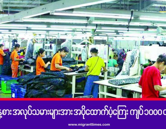 အောက်တိုဘာ ၁၅ ၊ Migrant Times ။ နေ့စားဝန်ထမ်းများနှင့် နေ့စားအလုပ်သမားများ၏ အပိုထောက်ပံ့ကြေးငွေကို ကျပ် ၁,ဝဝဝ ထပ်မံတိုးမြှင့်လိုက်ကြောင်း စစ်ကောင်စီ(စစ်ကော်မရှင်) လက်အောက်ခံ အလုပ်သမားဝန်ကြီးဌာနက အောက်တိုဘာ ၁၄ ရက်နေ့တွင် ထုတ်ပြန်သည်။ အလုပ်ချိန်တစ်ရက် ၈ နာရီစာ အတွက်သတ်မှတ်ထားသော